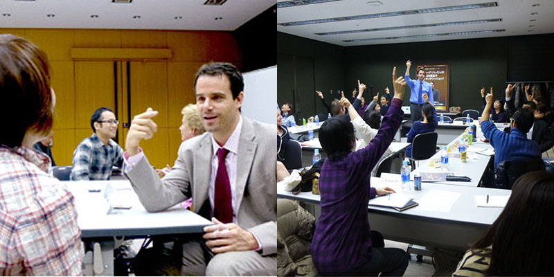 弊社代表スティーブ・ソレイシィは、日本語、英語、あるいは日本語+英語で、企業、学校、団体等の皆様に、ワークショップをご提供しております。アルク出版主催による“英語が話せる自分に変わる。ブレークスルーを起こす2日間”と題した、スピーキング力UPのためのワークショップも定期的に開催しています。